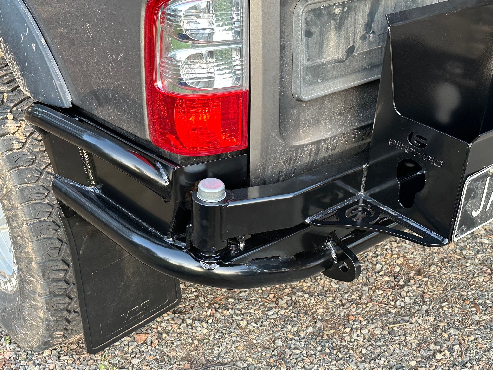 The options that are available are your base style rear bar that is just the bar itself, right through to the hamburger with the lot, this includes dual swing aways with one tyre holder and dual or single jerry can holders.